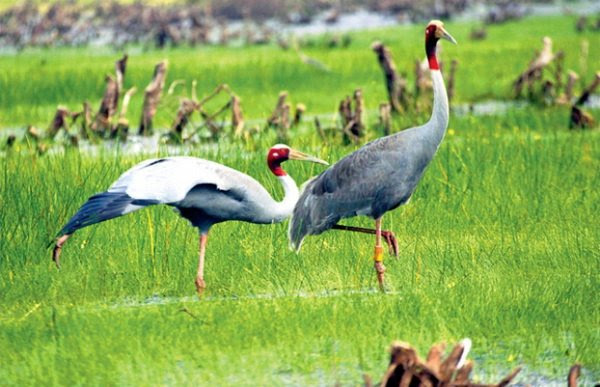 Những con sếu đầu đỏ ở vườn quốc gia Tràm Chim