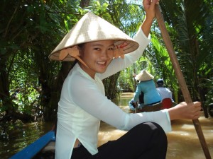 Người ta kể răng: có một bà chèo ghe bán mắm. Buổi chiều bà cắm sào nấu cơm. Bỗng có một người đàn ông choàng hầu khăn rằn cập xuống làm quen: