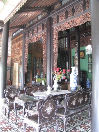Chuyển lại ý muốn của cụ Diệm là một ông thiếu tá đi xe tới cùng lính tráng, súng ống. Ông ra giá, hễ trong vòng vài chục triệu bạc, tui muốn bao nhiêu cũng có, và còn hứa sẽ cắt thêm cho tui một khoảnh đất ở thị xã Tam Kỳ – tỉnh lỵ bấy giờ. Tui không chịu. Ông hạn cho tui suy nghĩ, ý là không muốn bán cũng phải bán, vì ông Diệm muốn mua cho bằng được. Run rủi làm sao, sau đó vùng này thành chiến địa tranh chấp dữ dội giữa hai bên Quốc gia với Cộng sản, nên việc tui không chịu bán nhà cũng được cho qua." Từ năm 1965, gia đình cụ Anh phải chuyển ra trung tâm huyện ở để tránh tên bay đạn lạc. Làng Lộc Yên ngày nào cũng hứng đại bác bắn phá, nhưng kỳ lạ sao ngôi nhà vẫn chẳng chút hề hấn gì.Cụ Anh bùi ngùi: "Mười năm, từ 1965 cho đến 1975, tui cứ ban ngày vào ở làm vườn, đêm trở ra trung tâm huyện ngủ, nhưng chẳng bao giờ tui nghĩ đến chuyện dời nhà hay bán nhà. Mươi năm lại đây, cả chục lần người ta đến gạ gẫm mua nhà, nhưng tui vẫn trả lời mười lần như chục là không bán. Nếu tui có ý định bán, thì làm chi còn cơ hội đến bây chừ để mấy người gùn ghe." Cái đầu bạc cụ Anh thoáng hơi đổ xuống mặt bàn gỗ vuông đen bóng cổ xưa, mường tượng như cụ đang lắng nghe tiếng vọng từ đâu đó xa xăm lắm, rồi giọng cụ trầm xuống theo hai câu đối hên bức liễn đặt ở bàn thờ gia tiên: "Bách tải triệu bằng bồi phúc trạch / Nhất sanh trì thủ trọng cương thường. Cụ cố tui lưu lại bức liễn đối ni, bên trong còn ẩn hàm ý muốn lớp con cháu kế thừa phải gìn giữ phúc trạch mà truyền đời. Nhưng tâm nguyện ấy của cụ cố tui đã không được làm toàn vẹn."