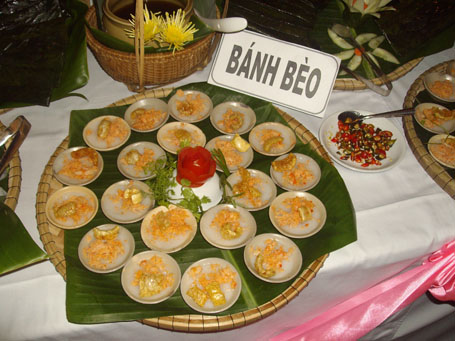 Thưởng thức bánh bèo đúng nghĩa phải là bánh được làm trong từng chén nhỏ, và được sắp lên những cái mẹt tre