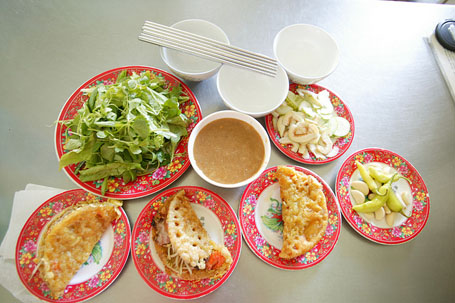 Món bánh khoái thể hiện triết lý ẩm thực của người Huế. Là lối ăn đa sắc, đa vị, đa hương với đủ các màu xanh, đỏ, tím, vàng, trắng khi dọn ra trên bàn