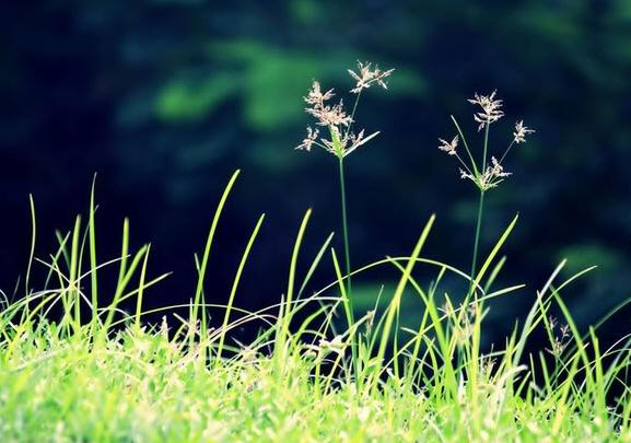 Đến mùa mưa, chỉ sau một thời gian ngắn là đã thấy lá non trổ mau lẹ. Rồi từng mảnh xanh mượt nõn nà nổi lên đây đó, điểm những hoa nhỏ xíu, đủ màu tùy theo từng loại cây. Nhiều nhứt là cây nút áo, cây mắc cỡ, cỏ gà, cỏ may v.v...
