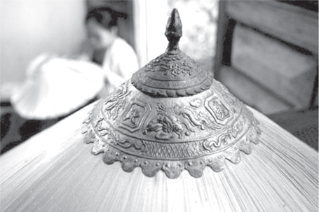 Ngày nay chóp nón để trần, trên đỉnh có một chùm chỉ ngũ sắc phất phơ như bông hoa. Nón sẽ được gia công thêm nếu khách có yêu cầu như để mặt lá nón được láng bóng, không bị thấm nước qua các lỗ kim khi trời mưa, người làm nón quét lên đó một lớp mỏng sơn dầu trong suốt, hoặc bọc nhựa nón sẽ bền và trông đẹp hơn.