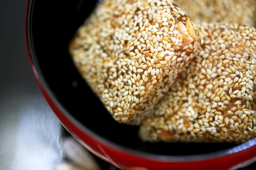 Những người Huế đài các phong lưu xưa thường uống trà và ngậm nhâm nhi miếng mè xửng nhỏ.
