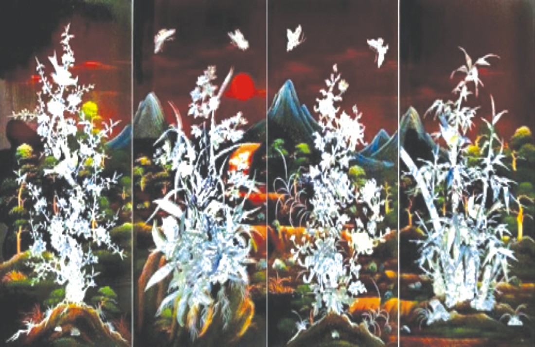 Khi có được tấm vóc nói trên (hoặc các mô hình chạm khác bình hoa, các bộ đồ khác), người chế các món đồ phải làm các giai đoạn gắn, dán các chất liệu tạo màu cho tác phẩm trước tiên như: vỏ trứng, mảnh xà cừ, vàng, bạc...sau đó phủ sơn rồi lại mài phẳng, tiếp đến dùng màu.