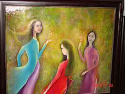 Buổi chiều ngày 27 tháng 11, - tôi đến Hội Trường đang tấp nập những họa sĩ khắp nơi tụ tập về,- đang trong giai đoạn cuối với những tranh tượng giàn gía treo trên tường, chính giữa phòng và điều chỉnh ánh sáng… Vợ chồng Hùng Denvver đến hơi trể nên ba bức tranh của anh phải để trên giá! Nhìn chung, cứ một họa sĩ đem đến ba bức tranh là ta hình dung được số tranh nhiều như thế nào.