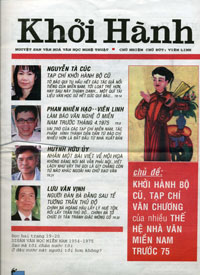 Nguyệt San Văn Hóa Văn Học Nghệ Thuật Nhận Định Biên Khảo Sáng Tác Sinh Hoạt,Chủ nhiệm, Chủ Bút: Viên Linh; Thư Ký Toà Soạn: Nguyễn Tà Cúc. Với sự đóng góp bài vở của: An Tiêm, Hồ Tùng Nghiệp, Phạm Quốc Bảo, Viên Linh, Nguyễn Tà Cúc, Lưu Văn Vịnh, Trần Ngọc Ninh, Đàm Trung Pháp, Nguyễn Quan Hà, Nguyễn Cố Nhân, Nguyễn Duy Ân, Nguyễn Cát, Tha Nhân Phan Long Yên, Phạm Cây Trâm...Giáo báo 5.00 Mỹ kim một số. Mọi chi phiếu, bài vở, thư từ gửi về: Khởi Hành P.O. Box 670 Midway City, CA 92655