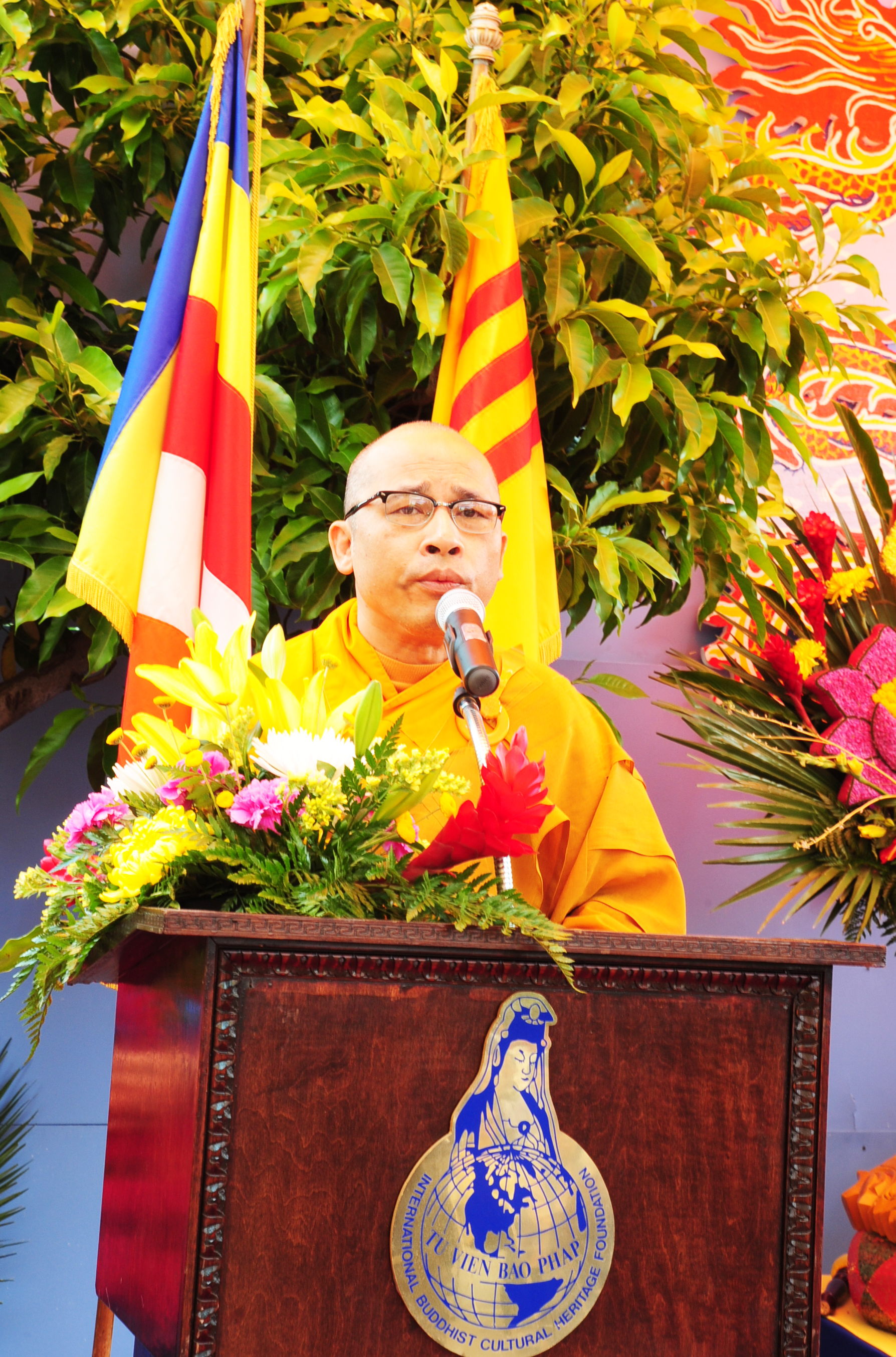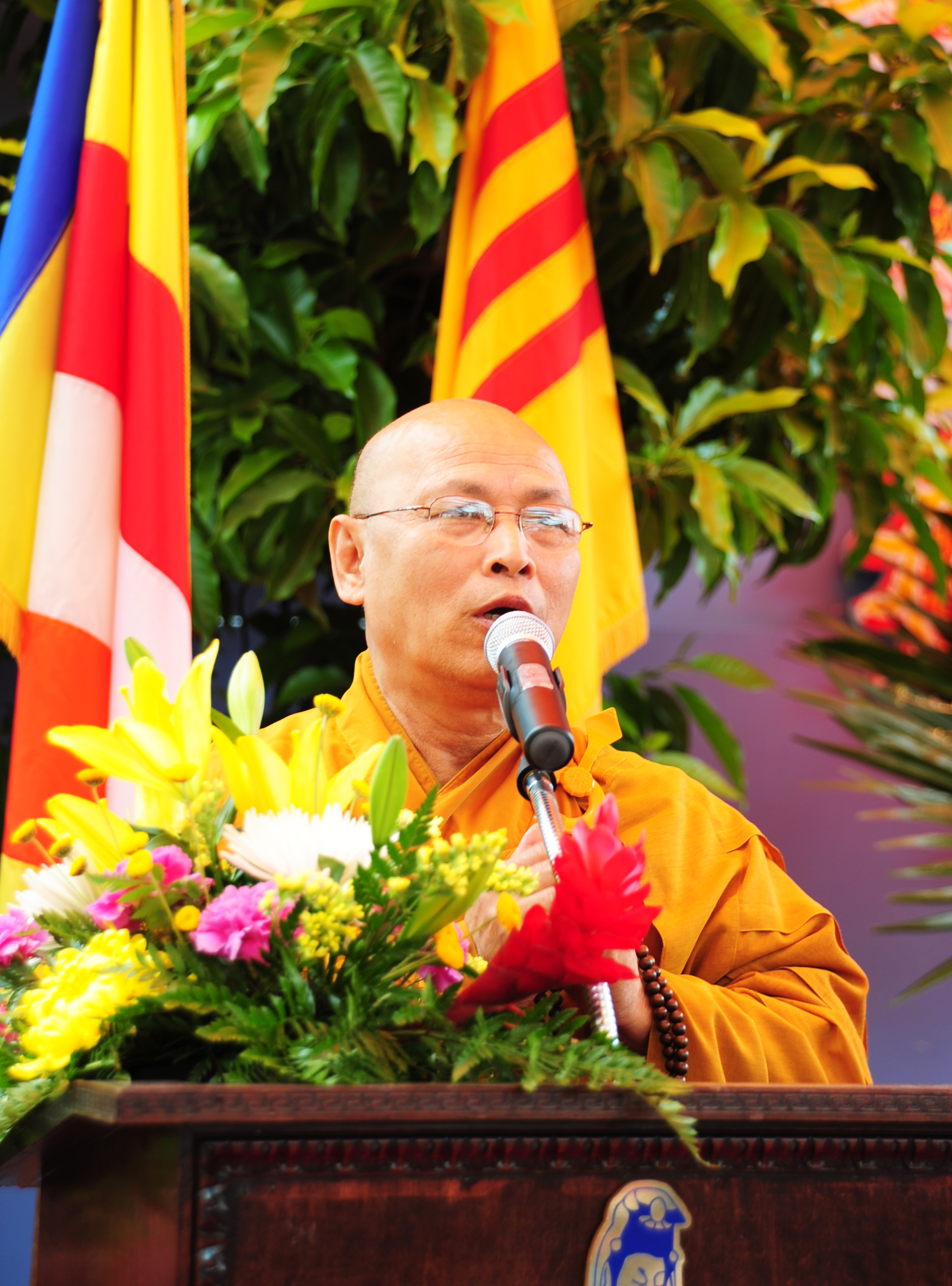 Thượng Tọa Thích Viên Lý - Tổng Thư Ký VP2 VHĐ.GHPGVN.TN.HN tại Hoa Kỳ lên tuyên đọc Thông Điệp Phật Đản PL 2554 của Hội Đồng Lưỡng viện GHPGVNTN của Đại lão Hòa thượng Thích Quảng Độ, Xử lý Thường vụ Viện Tăng Thống kiêm Viện trưởng Viện Hóa Đạo, Giáo hội Phật giáo Việt Nam Thống nhất.