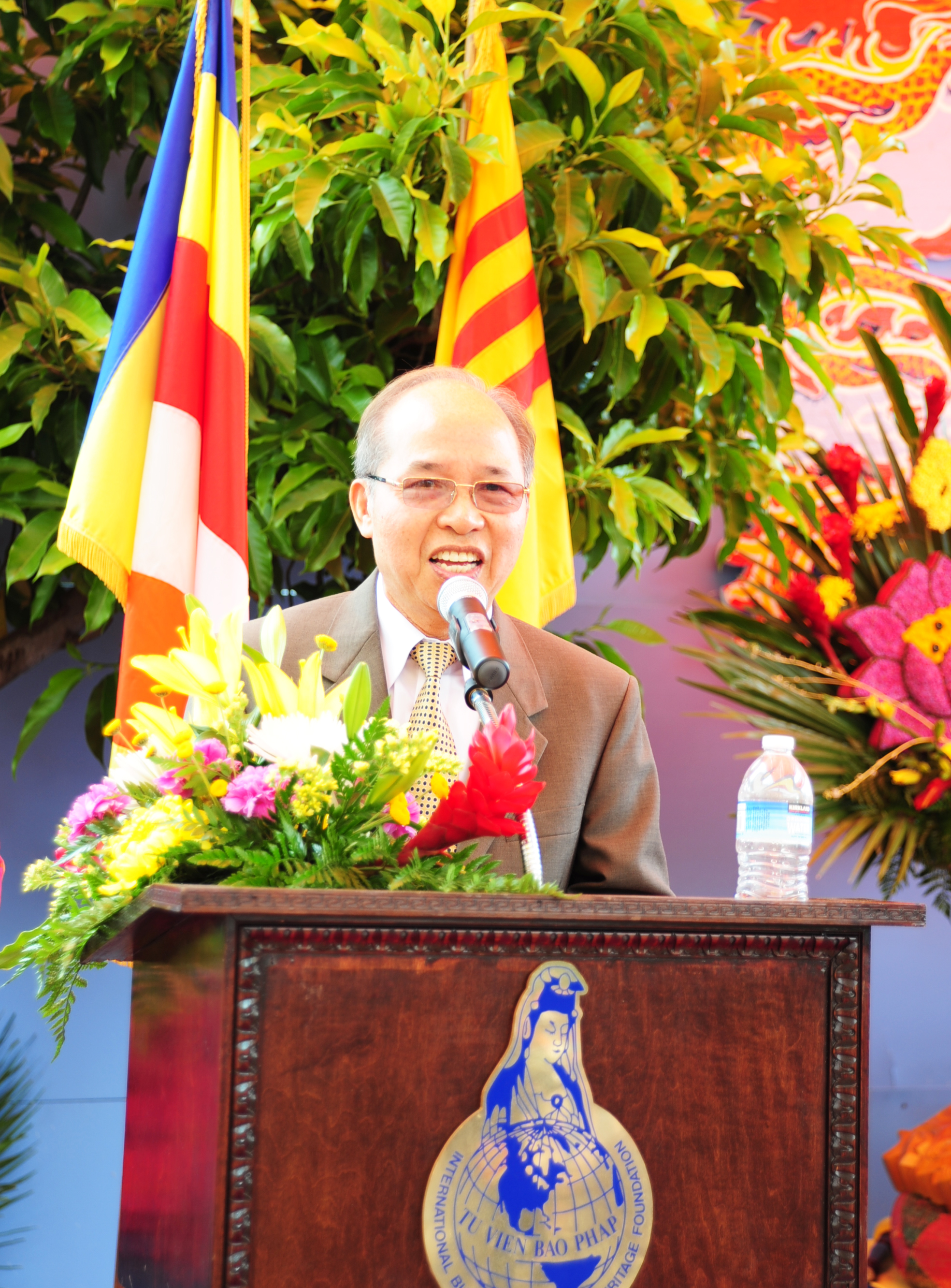 Tiếp theo GS. Vân Bằng đồng trưởng ban tổ chức đọc diễn văn bằng tiếng Anh với nội dung chân thành tri ân Chư Tôn Đức Tăng Ni, quý Quan Khách các vị Đại diện các Hội Đoàn, Đoàn Thể của Cộng Đồng người Việt tại Los Angeles, các Đại diện cơ quan Truyền Thông Báo Chí, quý Đồng Hương và Phật tử đã chứng minh và tham dự Đại Lễ Phật Đản Phật Lịch 2555 tại Chùa Diệu Pháp trong một không khí thật trang nghiêm và tôn kính...