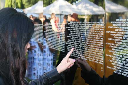 Garden Grove.-6/10(Hoàng Phúc/SGT) Hội Đồng Thành PHố Garden Grove, chiều ngày 6 tháng 10 năm 2011 đã tổ chức lễ khai mạc cuộc triễn lãm"Bức Tường Đá Đen Di động". Phỏng theo Bức Tường Đá Đen Khắc tên 58.000 Chiến Binh Hoa Kỳ Tử Trận Tại Việt Nam (The Moving Wall. The Original Traveling half-size replica of the Vietnam Veterans War Memorial in Washington, D.C) đồng thời mở cửa Bảo Tàng Viện Chiến Tranh Việt Nam tại Hoa Kỳ (Vietnam War Museum of America Foundation) trong Công viên Garden Grove Park. Buổi lễ khai mạc Bức Tường Đá Đen và mở cửa Bảo Tàng Viện Chiến Tranh Việt Nam với sự tham dự đông đảo các cựu chiến binh Hoa Kỳ và VNCH. Ngoài ra còn có mặt một số vị Dân cử các thành phố Westmenster, Santa Ana, Fountain Valley, Stanton, Anaheim và Thượng Nghị Sĩ Tiểu Bang Cali Lou Correa, giám sát viên đơn vị I Quận Cam. Cuộc triển lãm tổ chức tại Educational Center, Garden Grove Park từ ngày 6 đến ngày 9 tháng 10 năm 2011. Bức Tường Đá Đen Di Động gồm có 70 tấm đá đen có độ dày khoảng 3cm kích thước 1m20x0m80 mỗi tấm khắc hơn 800 tên các Chiến binh Mỹ tử trận tại Việt Nam, được xếp theo hình móng ngựa quanh công viên Garden Grove và được trang trí Quốc Kỳ Mỹ và VNCH, Cờ Tiểu bang california, cờ tổ chức MIA/POW (Missing In Action-Prisons of War). Cuộc triển lãm do tổ chức "Bảo Tàng Viện Chiến Tranh Việt Nam tại Hoa Kỳ"(Vietnam war Museum of America Foundation) phối hợp cùng Hội Đồng Thành Phố Garden Grove tổ chức. 41 Chiến binh Mỹ tử trận tại Việt Nam là cư dân Thành phố Garden Grove được Vinh danh trong dịp này với sự có mặt của thân nhân họ. Tên các Chiến binh được xướng lên cùng hồi chuông ngân vang và tiếng kèn chiêu hồn tử sĩ quyện vào không gian càng tạo nên bầu không khí trang nghiêm và u buồn, mọi người tưởng nhớ đến người thân đã ra đi vĩnh viễn không bao giờ trở về với họ.