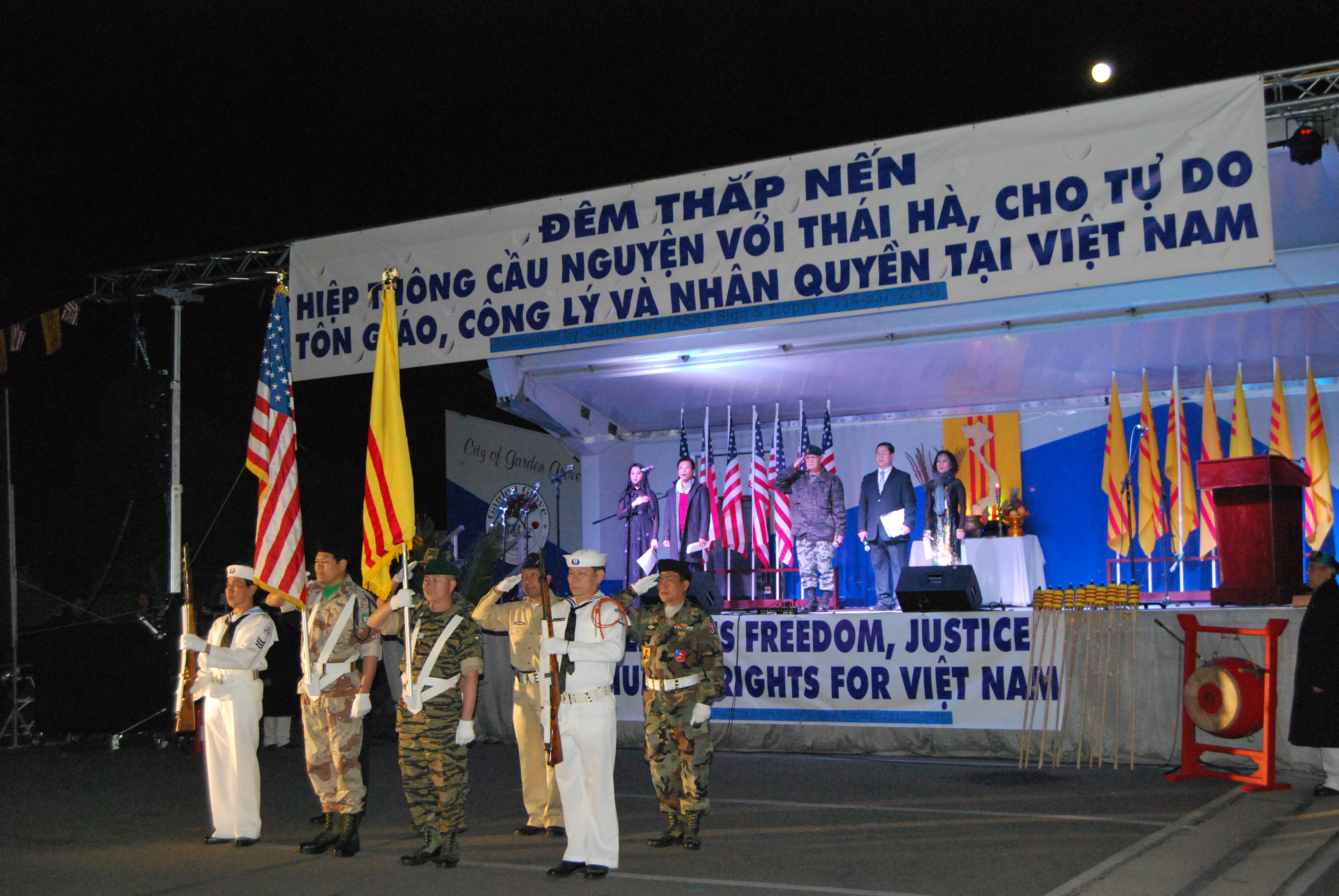 Westminster (Bình Sa) Do Liên Đoàn Công Giáo Miền Tây Nam Hoa Kỳ tổ chức vào lúc 8 giờ tối, tại đây hàng ngàn giáo dân và đồng hương tham dự. Về quan khách có: Hòa Thượng Thích Nguyên Trí, Chủ tịch Phong Trào Đòi Tự Do Tôn Giáo Cho Việt Nam, Phó Chủ Tịch Hội Đồng Điều Hành Giáo Hội Phật Giáo Việt Nam Thống Nhất Hoa Kỳ, Hiền Tài Phạm Văn Khảm, Chủ Tịch Hội Đồng Liên Tôn và các vị trong Hội Đồng gồm: Đức Giám Mục Trần Thanh Vân, Giáo Sư Nguyễn Thanh Giàu, Huynh Trưởng Tâm Hòa Lê Quang Dật, Qúy vị đại diện dân cử, các cơ quan truyền thanh, truyền hình, báo chí. Điều hợp chương trình do các MC Diệu Quyên, Minh Phượng, Đỗ Tân Khoa, Ngọc Chiệu…Sau nghi thức khai mạc, Linh mục Mai Khải Hoàn, Chủ tịch Liên Đoàn Công Giáo Miền Tây Nam Hoa Kỳ và cũng là Trưởng Ban tổ chức lên ngỏ lời chào mừng và cảm ơn qúy vị lãnh đạo tinh thần các tôn giáo, Hội Đồng Liên Tôn, đại diện các hội đoàn, đoàn thể và toàn thể đồng hương tham dự, Linh Mục cũng cho biết mục đích buổi thắp nến là để cầu nguyện và hiệp thông với giáo xứ Thái Hà, đòi hỏi nhà cầm quyền Cộng sản Việt Nam phải tôn trọng tự do tín ngưỡng và nhân quyền. Đêm càng khuya, thời tiết rất lạnh, hàng ngàn người vẫn ngồi ngoài trời theo dõi những lời phát biểu từ xa gọi đến của Linh mục Nguyễn Văn Phượng, chánh xứ Thái Hà, Đức Giám mục Vincent Nguyễn Văn Long từ Melbourne Úc Đại Lợi và Đức Giám mục Vincent Nguyễn Mạnh Hiếu từ Toronto Canada để chia sẻ và bày tỏ tình đoàn kết, hiệp thông với đồng bào Nam California đang có mặt trong buổi Thắp nến. Riêng Đức Giám mục Đa Minh Mai Thanh Lương, Giám mục Phụ Tá Giáo phận Orange vì ở xa nên ngài gửi điện thư về chúc lành cho mọi người hiện diện, và xin mọi người đồng tâm cầu nguyện cho giáo xứ Thái Hà cũng như cho tự do của các tôn giáo và nhân quyền tại Việt Nam được tôn trọng.
