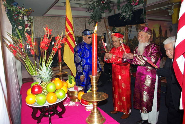 Ô. Kiều Văn Báu, thông qua Chương Trình và điều hành Buổi Lễ: Quốc Ca Việt Nam Cộng Hòa được đồng thanh hợp ca, âm vang tỏa rộng hướng về Tổ Quốc đau nhói cả con tim. Quốc Ca Hoa Kỳ được Ô. Huỳnh Quốc trổi giọng cao vút vượt cả không gian đem đến cho tâm hồn lòng nhân ái bình đẳng tự do cho con người. Nhạc Truy Điệu trổi dậy gọi Hồn Từ Sĩ đã bỏ mình trên dòng sông Hát, Bạch Đằng Giang, trên rừng sâu biển cả để cho chúng ta có ngày hôm nay. Trước Bàn Thờ Tổ Quốc, cụ Đỗ Văn Dần, Niên Trưởng, nguyện cầu Hồn Thiên Sông Núi độ trì cho đất nước Việt Nam trường tồn khỏi rơi vào tay bọn bành trướng bá quyền Bắc Kinh đồng hóa. Tưởng Niệm Tiền Nhân xây dựng Hậu Thế. Đó là lời tâm niệm của thế hệ thứ nhất cùng nhau xây dựng các thế hệ kế thừa.