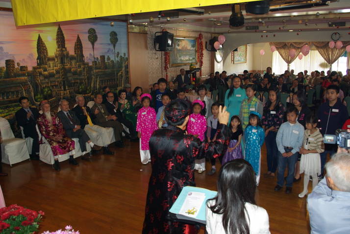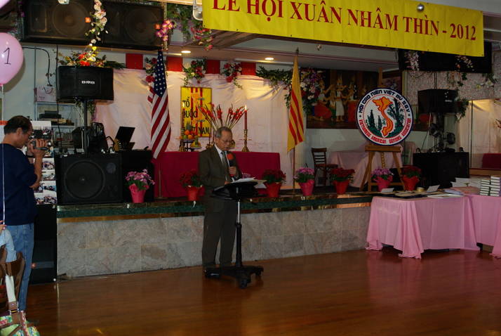Thay mặt Ban Tổ Chức Ô. Hồ Xuân Thứ, Hội Trưởng Cao Niên chào mừng và biết ơn quí vị quan khách, quí ân nhân bảo trợ gồm các Bác Sĩ, Dựợc Sĩ, Công Thưong Kỹ Nghệ Gia, Chủ nhân các cơ sở thương mại, Quý Nhân Sĩ, Quý cơ quan Truyền Thông. Quí vị Hội Viên Liên Hội, thân hữu đồng hương, quý phụ huynh cùng các cháu học sinh tham dự Giải Khuyến Học và Tiếng Việt có mặt đông đủ trong y phục ngày Hội thật rực rỡ trang nghiêm.
