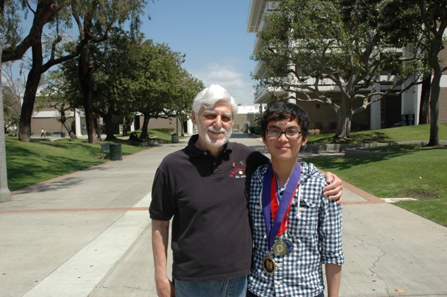 Lê Duy (phải) và GS Sal Addotta tại sân trường Santa Ana College. (Photo SAC)