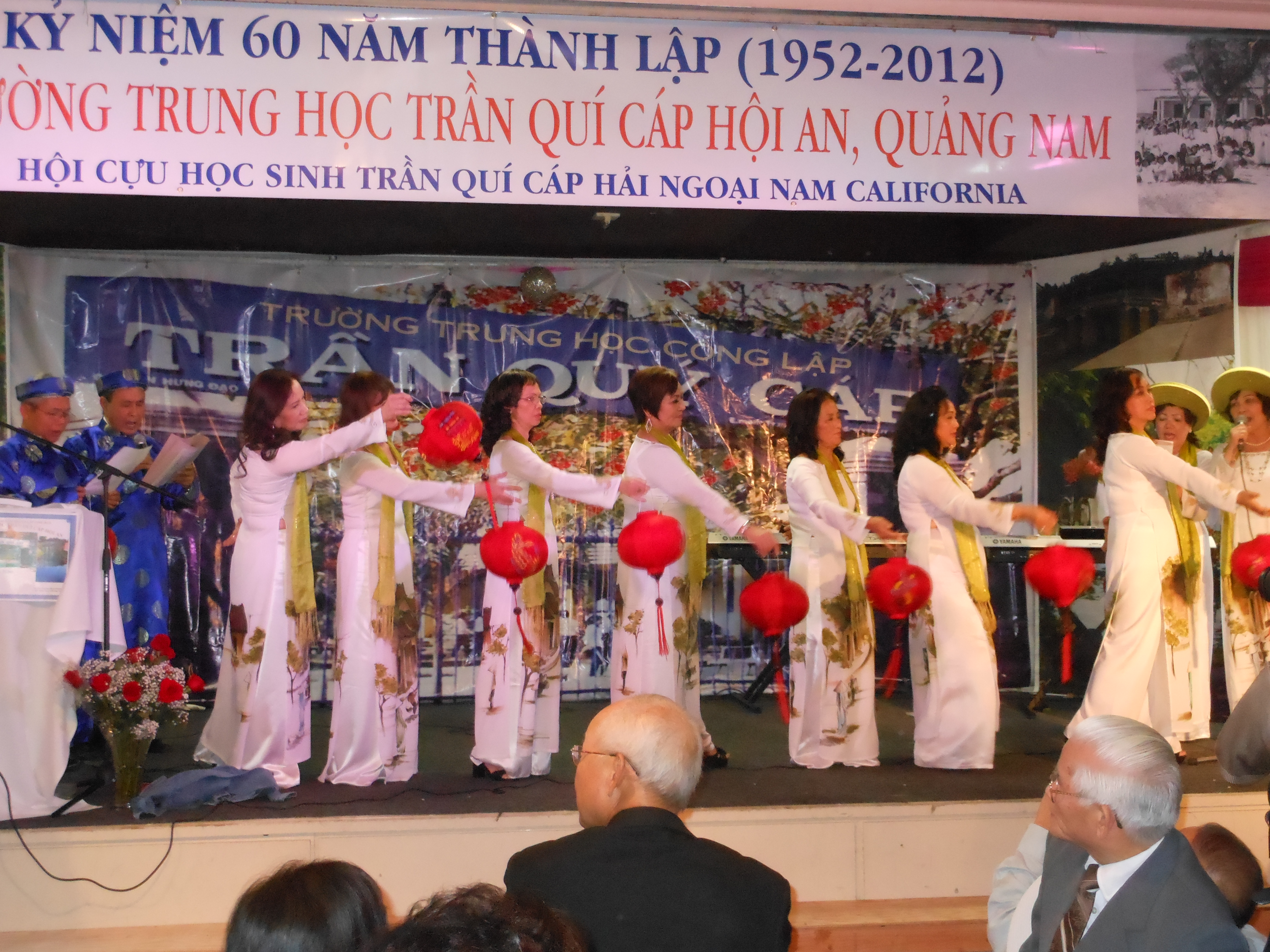 Cuối tuần qua tại thành phố Santa Ana trung học Trần Quý Cáp Hội An đã tổ chức đại hội kỷ niệm 60 năm ngày thành lập trường với sự tham dự của hơn 5 trăm quý thầy cô các bạn cựu học sinh Trần Quý Cáp Hội An và gia đình từ khắp nơi trên thế giới về dự kể cả Việt Nam.