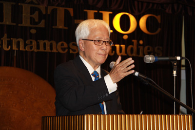 Điều hợp chương trình nhà báo Đinh Quang Anh Thái giới thiệu ông Nguyễn minh Lân đại diện Viên Việt Học ngỏ lời chào mừng đến với mọi người.