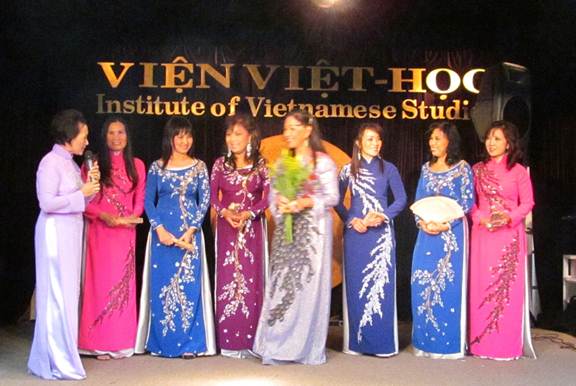 Tiếp theo Nữ Thi sĩ Hồng Khương với chiếc áo tứ thân rất duyên dáng lên cám ơn quan khách và ngọt ngào ngâm hai bài thơ "Anh Khóa" của thân phụ và "Giữ con cháu nơi xa" của thân mẫu.