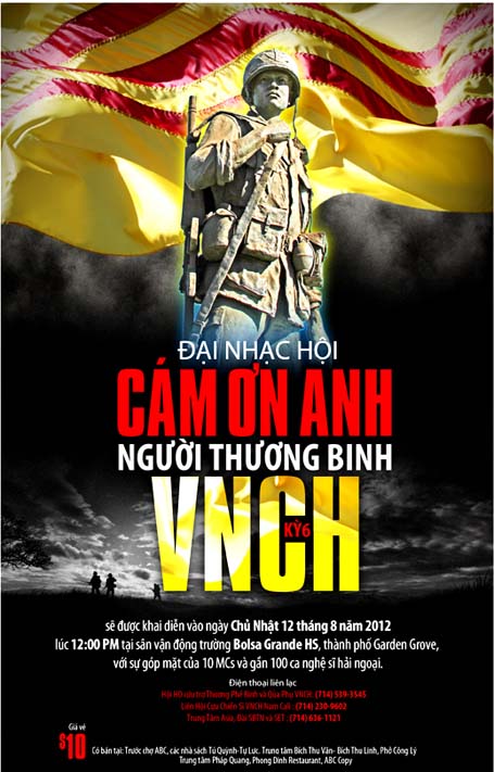 Với tâm niệm chúng ta không quên công ơn của những người đã hy sinh cho chúng ta có được ngày hôm nay, Hội H.O Cứu Trợ Thương Phế Binh và Quả Phụ VNCH được thành lập từ lâu và đã tổ chức rất thành công 5 kỳ chương trình Đại Nhạc Hội Cám Ơn Anh và cuối tuần qua cũng tại sân vận động trung học Bolsa Grande thuộc thành phố Garden Grove Đại Nhạc Hội Cám Ơn Anh Kỳ 6 được tổ chức với sự tham dự của hàng ngàn đồng hương từ Pháp, Canada, Hà Lan, Úc, Anh cùng 50 tiểu bang Hoa Kỳ về dự.