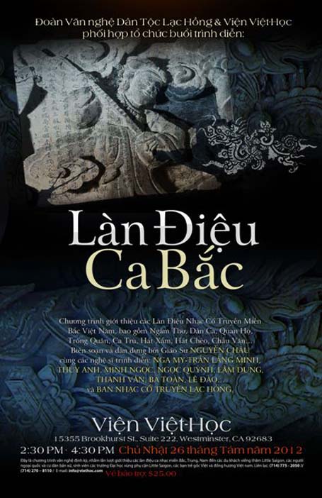 Buổi trình diễn: Làn Điệu Ca Bắc do Đoàn Văn nghệ Dân tộc Lạc Hồng và Viện Việt-Học phối hợp tổ chức.