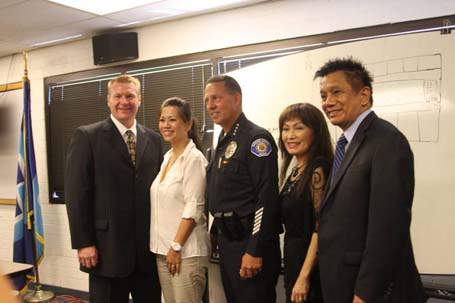 Ông thông báo số điện thoại của cô Cindy Nagamatsu người quản lý ban phòng chống tội ác để mọi người có thể liên lạc mỗi khi cần là (714) 741 5760