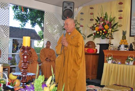 Tiếp theo các em Gia Đình Phật Tử Phổ Đà lên dâng hoa cúng Phật, sau đó là chương trình lễ Vu Lan bắt đầu dưới sự chủ lễ của Hòa Thượng Thích Nguyên Hạnh và Chư Tôn Đức Tăng Ni, sau phần nghi lễ, Hòa Thượng Thích Nguyên Hạnh đã thuyết giảng về đề tài "Đạo Hiếu Là Cội Nguồn Của Dân Tộc" HT nói: "hiếu đạo là đức hạnh hơn hết các đạo, Phật dạy mười ân đức cha mẹ mà phận làm con không thể không nghĩ đến, ai mang mình 9 tháng 10 ngày biết bao đau đớn, nhưng đến khi nghe tiếng khóc chào đời là bao đớn đau đều tan biến tất cả, cha mẹ ngậm đắng nuốt cay cho mình ngọt bùi, hình bóng đứa con vẫn mãi mãi in sâu trong trái tim cha mẹ cho đến khi trút hơi thở cuối cùng, thì hình bóng đứa con mới không còn... Chữ hiếu là nền tảng tất cả đức hạnh. Hiếu đạo là đạo lý dân tộc là cội nguồn cho tất cả ý nghĩa trong đời sống nầy. Một người có cuộc sống chai đá, tàn bạo nhất, đối diện với những bi kịch lớn nhất đời mình khi có biến cố xãy ra cũng đều kêu Mẹ, hình ảnh cuối cùng cũng vẫn là Mẹ, cảm ơn Cha, Mẹ. Con người không hiếu thảo với cha mẹ thì làm sao còn trông mong thương nước, thương dân... Dân tộc ta ngày nay trong hoàn cảnh điêu linh như thế nầy, 60% dân chúng nghèo nàn, lam lủ, trong đó có những người cha, người mẹ bán máu cho con cắp sách đến trường, có những người phải đi xin để nuôi con đi học. Bao lâu lễ Vu Lan còn, hiếu đạo còn, dân tộc Việt Nam còn giữ lấy để ghi nhớ tổ tiên, nuôi lớn con em để giữ gìn nguồn gốc, không làm người mất gốc vong bản vì vậy, cho nên hiếu đạo là cội nguồn của dân tộc..."