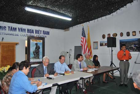 Sau đó là phần phát biểu của qúy vị tham dự. Mở đầu Huynh Trưởng Tâm Hòa Lê Quang Dật cho biết chúng ta không để những tên cộng sản phối hợp với những tên tay sai tự do hoạt động tại Thủ Đô tỵ nạn của chúng ta. Ông Phát Bùi, Chủ Tịch Ủy Ban Kế Hoạch Thành Phố Garden Grove, Ứng cử viên Nghị Viên Thành Phố Garden Grove lên phát biểu, ông đề nghị ban tổ chức biểu tình nên liên lạc với chính quyền địa phương (Thành Phố Westminster) để cho biết những việc làm vi phạm của cộng sản đối với thành phố. Ông Trần Vệ yêu cầu ban tổ chức biểu tình phổ biến rộng rải để đồng hương biết tham dự biểu tình. Ông Bùi Bỉnh Bân, đề nghị liên lạc với Bà Bùi Bích Hà trước khi cộng đồng tỏ thái độ. Ông Nguyễn Phục Hưng phát biểu rằng vì thời gian gấp rút yêu cầu lấy biểu quyết để thực hiện. Niên Trưởng Vũ Trọng Mục đề nghị tẩy chay, không chấp nhận cộng sản trong Thủ Đô người tỵ nạn chúng ta... Tiếp theo Tiến Sĩ Phạm Kim Long, ông Nhan Hữu Mai, cô Diệu Chi và nhiều người tham dự lên góp ý kiến, mọi người kêu gọi biểu tình tẩy chay cuộc triển lãm.