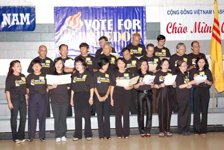 Về phía cộng đồng người Mỹ gốc Việt, Ban Tổ Chức ghi nhận lời phát biểu của ông Đỗ Hồng Anh (Chủ tịch Cộng Đồng Việt Nam tại Washington DC, Maryland & Virginia) và Bác sĩ Nguyễn Quốc Quân (Chủ tịch Tập Hợp Vì Nền Dân Chủ), là hai tổ chức đã phối hợp với Phong Trào Hưng Ca Việt Nam để cùng thực hiện chương trình "Vote for Freedom - Bỏ Phiếu Cho Tự Do".