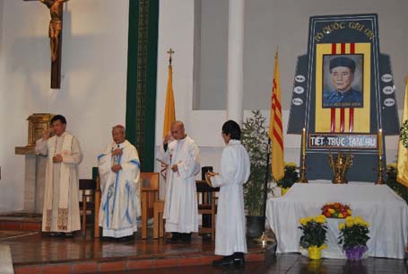 Westminster (Vân Giang) - Hội Ái Hữu Người Việt Quốc Gia Hải Ngoại do cụ Cao Xuân Vỹ đứng đầu đã tổ chức Thánh Lễ cầu nguyện và tưởng niệm cố Tổng Thống Ngô Đình Diệm cùng các chiến sĩ Quốc Gia vào lúc 1 giờ 30 chiều Thứ Bảy, ngày 27.10.2012 tại thánh đường Blessed Sacrament Church ở thành phố Westminster, do Đức Giám Mục Mai Thanh Lương chủ tế và 4 Linh mục đồng tế. Trước thánh lễ, có rước di ảnh cố Tổng Thống lên lễ đài.
