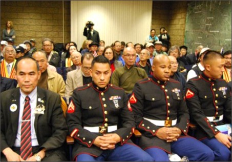 Tất cả mọi người tham dự mời hội đồng thành phố chụp chung hình lưu niệm với 2 lá cờ VNCH và Hoa Kỳ.
