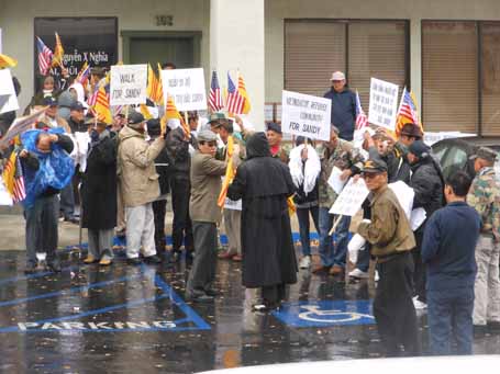 (Vy Trần SGT) - “Cái mưa và lạnh của miền Nam California làm cho con hiểu được sự nguy khó của những nạn nhân cơn bảo Sandy vừa qua tại các tiểu bang miền Đông Bắc Hoa Kỳ, vì thế cho nên dù mưa và lạnh như thế nào đi nữa con cũng tham dự buổi xuống đường hôm nay để kêu gọi lòng hảo tâm của các bác, cô, chú và anh chị em đóng góp kẻ ít người nhiều giúp đỡ các nạn nhân là những người mà cách đây hơn 37 năm đã giúp đỡ người Việt chúng ta những bước đầu tiên khi đến quê hương thứ hai này"