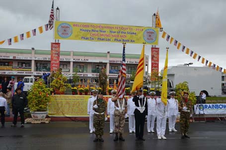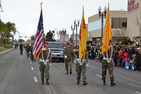 Đúng 9 giờ 30 phút toán hầu kỳ do liên hội cựu chiến sĩ với quốc kỳ VNCH, Hoa Kỳ đi trước và quân kỳ cùng cờ các quân binh chủng theo sau tiến về trước khán đài.