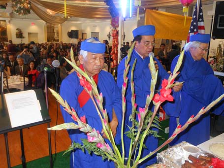 Chương trình họp mặt tất niên với nghi thức chào quốc kỳ VNCH, Hoa Kỳ phút mặc niệm và tiếp đến là phần tế lễ tổ tiên.