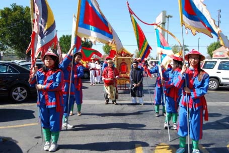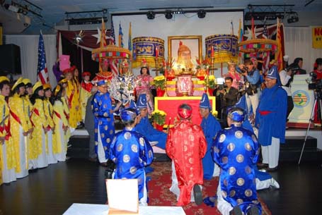 khấu, bàn thờ khói nhang nghi ngút, sau phần ghi thức khai mạc, một đoàn dài