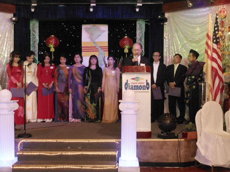 Chương trình Tân Xuân được mở đầu với nghi thức chào quốc kỳ VNCH, Hoa Kỳ phút mặc niệm và dâng hương trước bàn thờ Tổ Quốc.