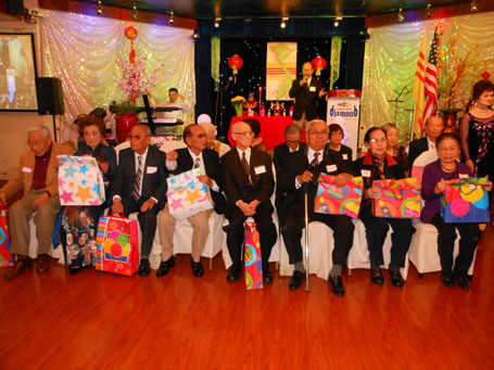 Phần chúc thọ và tặng quà quý vị cao niên, năm nay vị cao niên nhất trong số các vị cao niên là cụ ông Trần Thi Kinh 90 tuổi.
