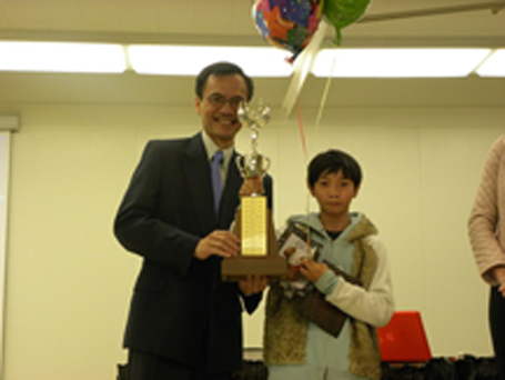 Học sinh Cody Trần từ Trường Bell Intermediate, đoạt giải nhất cuộc thi đánh vần năm 2012 đã đọc lời chào mừng và khích lệ các thí sinh trong cuộc thi sắp diễn ra.