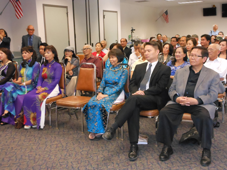 Sau phần nghi thức chào cờ là phát biểu của đại diện Thư Viện Việt Nam Toàn Cầu.
