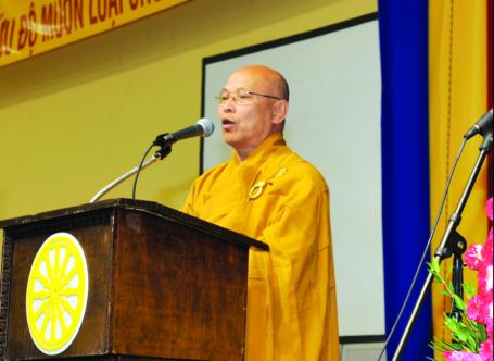 "...nhân mùa Phật Đản năm nay, trước hết, Giáo Hội Phật Giáo Việt Nam Thống Nhất khẩn thiết kêu gọi lãnh đạo các Quốc gia trên thế giới, các Quốc gia trong khu vực Châu Á Thái Bình Dương, nhất là Nhà Cầm Quyền Cộng Sản Việt Nam hãy tôn trọng tinh thần Từ Bi, Trí Tuệ và Bình Đẳng của Đạo Phật đã được Liên Hiệp Quốc công nhận và các Quốc Gia thành viên đều cam kết thực thi. Quí vị lãnh đạo hãy lấy tinh thần Từ Bi, Trí Tuệ và Bình Đẳng ấy làm vũ khí tối thượng để giải quyết các tranh chấp đang đưa nhân loại vào một cuộc chiến tương tàn và đưa Dân Tộc Việt Nam vào con đường nô lệ của một chế độ độc tài toàn trị.