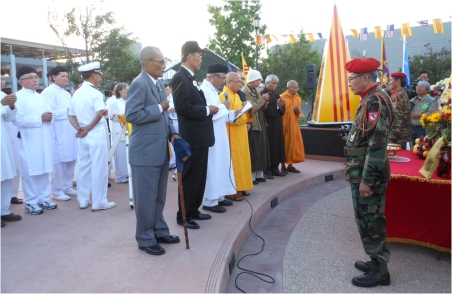 Hội Đồng Liên Tôn Việt Nam tại Hoa Kỳ niệm hương trước bàn thờ Tổ Quốc, hiền tài Phạm Văn Khảm đọc lời khấn nguyện.