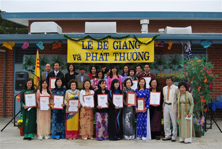 Sau đó là phần vinh danh các Thầy, Cô giáo đã có nhiều đóng góp cho Trung Tâm Văn Hóa Việt Nam, phần đông là những Thầy, Cô phụ trách lớp. Đại diện Thượng Nghị Sĩ Tiểu Bang California Địa Hạt 34 Lou Correa là Bà Quyên Trần đã trao tặng bằng tưởng lệ cho quý Thầy Cô.