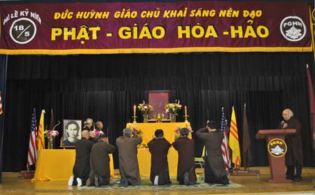 Sau nghi lễ chào quốc kỳ Mỹ Việt, Ông Hà Nhân Sinh đọc lược sử Phật Giáo Hòa Hảo và ý nghĩa của ngày 18 Tháng 5 Âm lịch. Ông Sinh cho biết, trong khi Việt Nam còn chìm đắm dưới ách thống trị của thực dân Pháp, trong khi Chủ Nghĩa Cộng Sản đang tích cực lợi dụng các phong trào yêu nước để bành trướng, và trong khi trục Phát xít Đức, Ý , Nhật đang ráo riết chuẩn bị cuộc Thế chiến lần thứ hai, Đạo Hòa Hảo xuất hiện như một hiện tượng kỳ bí trong lịch sử tôn giáo và lịch sử tranh đấu cho sự sanh tồn của dân tộc Việt. Ngày 18 Tháng 5 năm Kỷ Mão 1939, ngày ra đời Phật Giáo Hòa Hảo, đến nay 74 năm.