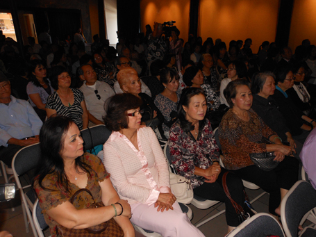 Giáo sư Song Thuận ca ngợi những đóng góp của bà Bích Huyền cho cộng đồng và nhất là giới trẻ.