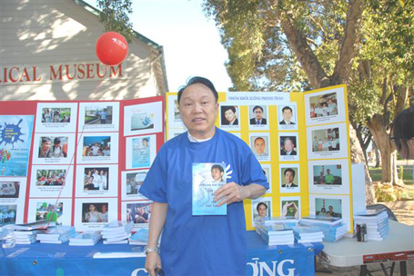 Bác sĩ Nguyễn Xuân Ngãi, một thành viên của Phong Trào Con Đường Việt Nam đặc trách hải ngoại đã có mặt tại quầy tặng sách cùng với một số thành viên khác.