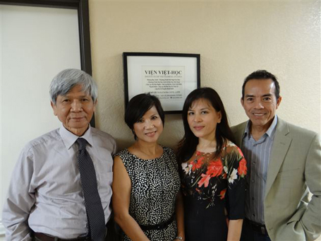 Các viên chức Viện Việt Học. Từ trái: Nguyễn Minh Lân, Anh Đào, Duyên Anh, Nguyễn Minh.
