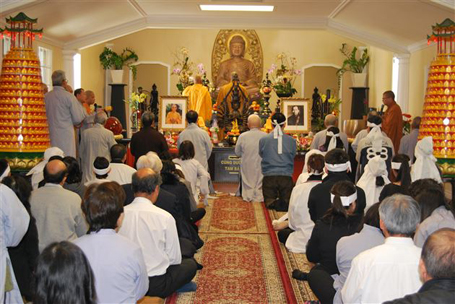Lễ Tưởng Niệm dưới sự chứng minh của Hòa Thượng Thích Nhật Quang và sự tham dự của qúy Hòa Thượng, Thượng Tọa, Đại Đức Tăng Ni, các cựu Tuyên Úy và đồng hương Phật tử.