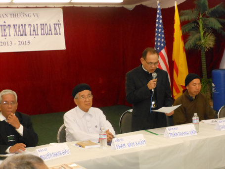 Ban tổ chức giới thiệu tân ban thường vụ Hội Đồng Liên Tôn Việt Nam tại Hoa Kỳ nhiệm kỳ 2013-2015.
