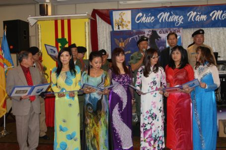 Chương trình hội ngộ được mở đầu với nghi thức chào quốc kỳ VNCH, Hoa Kỳ, phút mặc niệm và quý niên trưởng dâng hương trước bàn thờ tổ quốc.