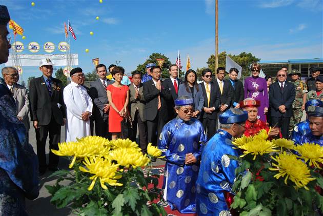 Tham dự lễ cắt băng khai mạc có qúy vị dân cữ như Dân Biểu Alan Lowenthal, Thị Trưởng Thành Phố Westminster Ông Tạ Đức Trí và các Nghị Viên; Phó Thị Trưởng Thành Phố Garden Grove Cô Dina Nguyễn và các Nghị Viên, cựu Dân Biểu Solorio, Đại Diện Bân Biểu Loretta Sanchez, Cô Asia Thanh, đại diện Thượng Nghị Sĩ Lou Correa, Ông Bảo Nguyễn, Học Khu Garden Grove, Giám Sát Viên Jannet Nguyễn, Tiến Sĩ Phạm Kim Long, Hội Đồng Liên Tôn có Hiền Tài Phâm Văn Khảm và Giáo Sư Nguyễn Thanh Giàu, Ông Phan Kỳ Nhơn, Chủ Tịch Ủy Ban Chống Cộng Sản và tay sai, Ông Hiếu Nguyễn, Chánh Lục Sự Quận Cam, Ông Bùi Đẹp, Trung Tâm Trưởng Tập Thể Chiến Sĩ Tây Nam Hoa Kỳ, Ông Phan Ngọc Lượng, Chủ Tịch Liên Hội Cựu Chiến Sĩ Nam California và một số qúy vị đại diện hội đoàn, đoàn thể trẻ, các cơ quan truyền thông và đồng hương. Sau khi cắt băng khai mạc, tất cả đều đến trước bàn thờ tổ tiên để bái tổ theo nghi thức cổ truyền do hội Đền Hùng phụ trách. Sau phần tế lễ tất cả qúy vị quan khách vào khán đài chính dẫn đầu có Ban nhạc của Trường Trung Học Bolsa Grande.