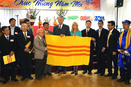 Tiếp theo, Thị Trưởng Tạ Đức Trí ngỏ lời cám ơn ban tổ chức và Hội Đồng Hương Quảng Ngãi, trong dịp nầy ông cũng được cảm ơn Ông Chánh án Charles Mc Coy đã có nhã ý trao lại lá cờ vàng VNCH cho cộng đồng người Việt.