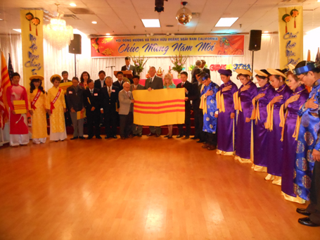 Tiếp theo ông Lê Địch Hữu, Hội trưởng lên ngỏ lời chào mừng và cảm ơn sự tham dự của qúy quan khách, qúy cơ quan truyền thông cùng đồng hương thân hữu Quảng Ngãi. Trong dịp nầy ông mời qúy vị Quan khách va các thành viên trong ban tổ chức lên sân khấu để tiếp nhận lá quốc kỳ Việt Nam Cộng Hòa do ông Charles Mc Coy, chánh án Pomona, California trao lại cho Hội Đồng Hương Quảng Ngãi. Trong lời phát biểu Ông cho mọi người biết: "Ông là một cựu sĩ quan Thủy Quân Lục Chiến Hoa Kỳ và đã từng tham chiến tại chiến trường Việt Nam từ những năm 1968 đến 1970, khi Ông tham gia trận chiến tại Đại Lộc, Đà Nẵng, sau trận chiến ông thấy còn lại một lá cờ VNCH tại chiến trường, ông gói lá cờ này lại và đem về Mỹ cất giữ cho đến ngày hôm nay.